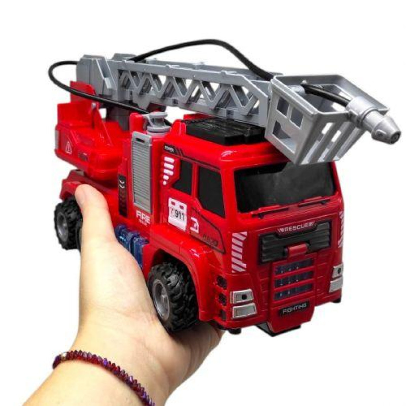 Пожежна машинка є ідентичною реплікою справжнього пожежної машини - грання з якою навчить дитину як вони працюють у справжньому світі. На радіокеруванні, оснащена звуковими ефектами (звуки двигуна, сирена) та підсвічуванням мигалок. Має висувну драбину, та катапульту, яка бризкає водою для затушення вигаданої пожежі під час гри, що додає реалістичності та більшого поглиблення у гру дитиною. Рекомендовано для дітей старше 3-х років. Машинка працює від 4 батарейок типу АА, пульт керування від 2 батарейок типу АА, також машинці потрібен акумулятор, який є у комплекті.
