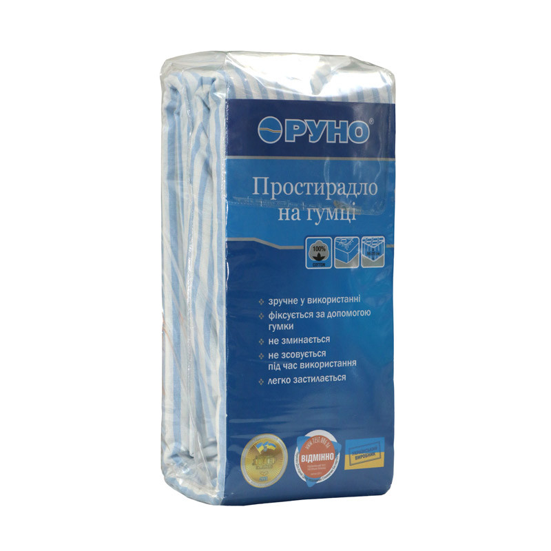Простирадло на гумці Руно 90х200+25 - Блакитна смужка бязь (20764)