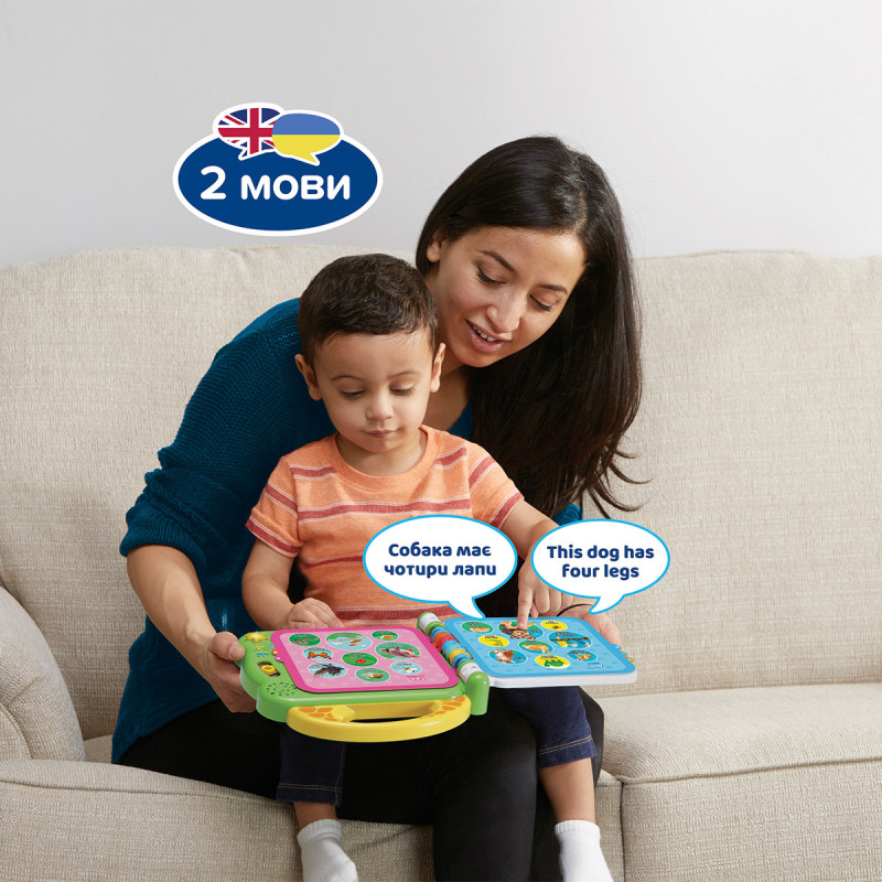 Захоплююча інтерактивна двомовна книга для малюків допоможе легко вивчити перші слова українською та англійською мовами!