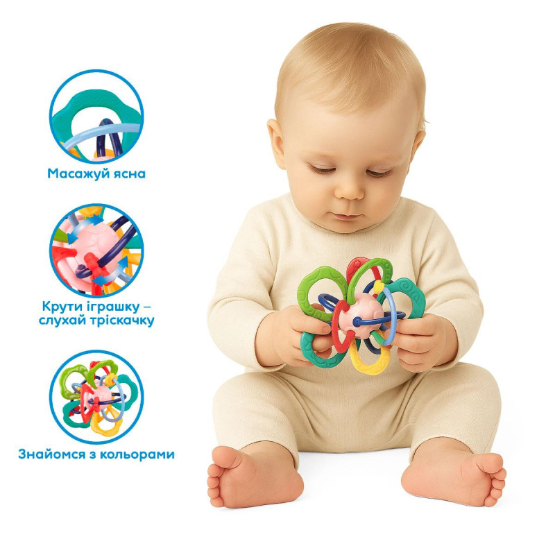 Завдяки еластичним пелюсткам дитина може кусати іграшку і масажувати ясна, щоб полегшити процес прорізування зубів.