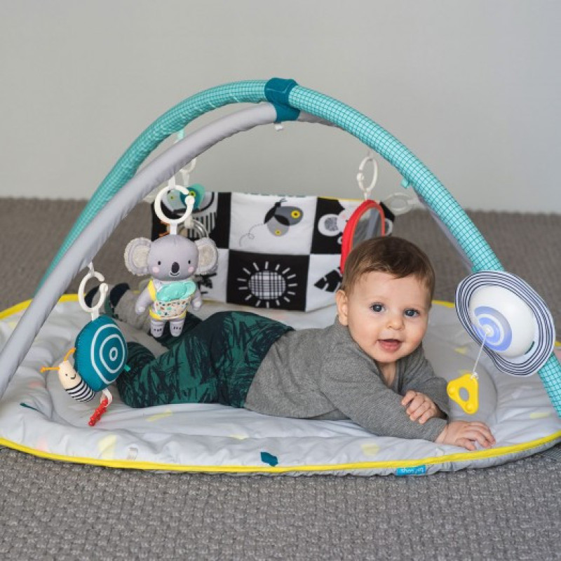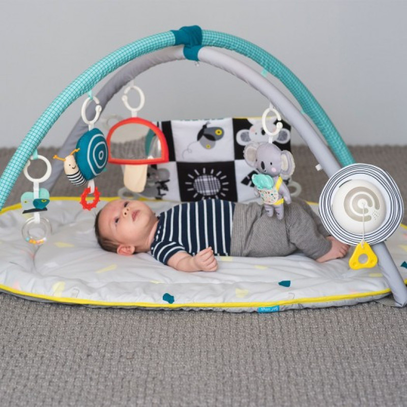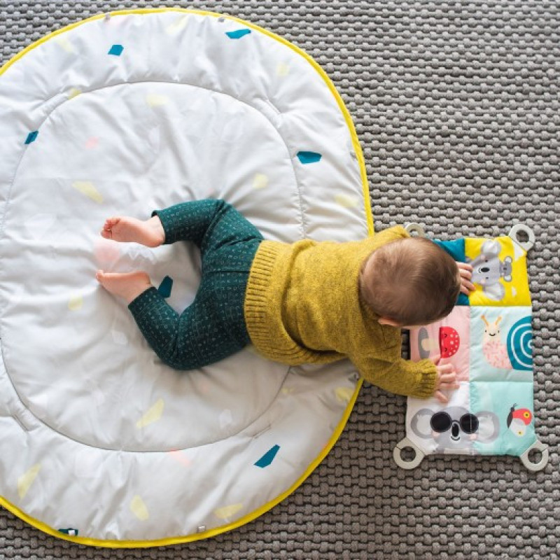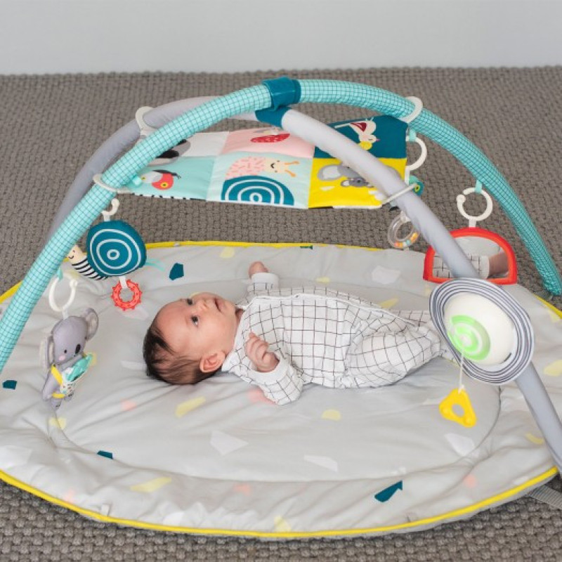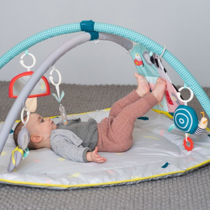 - М'який килимок оснащений унікальним двостороннім сенсорним центром 4-в-1, який стимулює малюка лежати в 4 різних положеннях, розвиваючи різноманітні навички в кожному з них. Розміщуйте малюка проактивно в різних положеннях - це дуже цінно для його рухового, когнітивного і сенсорного розвитку:
