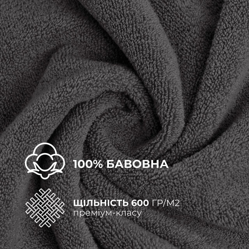 Рушник махровий бавовна IDEIA - 50x90 темно-сірий 600 г/м2