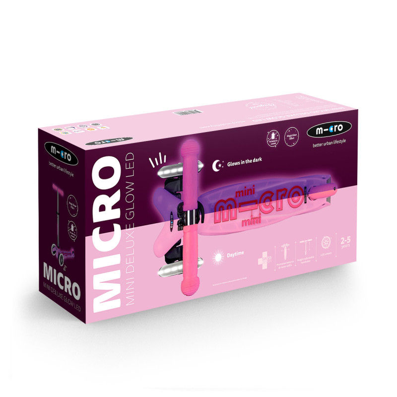Дитячі самокати серії Micro Mini Deluxe Glow LED є найбільш досконалими і міцними самокатами для дітей молодшого та дошкільного віку. На міжнародних виставках вони неодноразово визнавалися «самокатами року» серед дітей і батьків.
