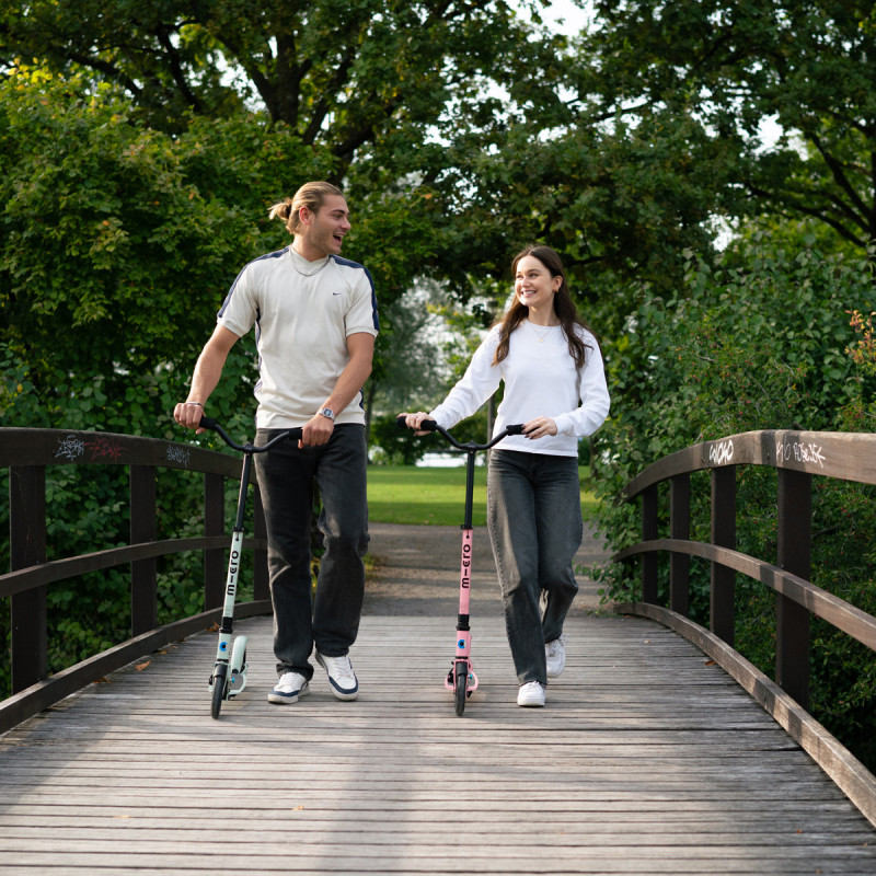 Модель серії Speed – унікальна. Самокат оснащений амортизаційними колесами і однією особливою додатковою функцією. Кулькові підшипники вбудовані в силікон, що забезпечує м'який ефект амортизації і, як наслідок, сприяє плавному ходу навіть на нерівних поверхнях.
