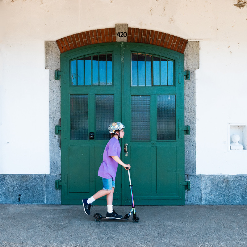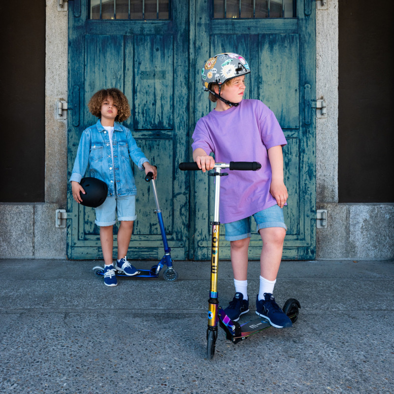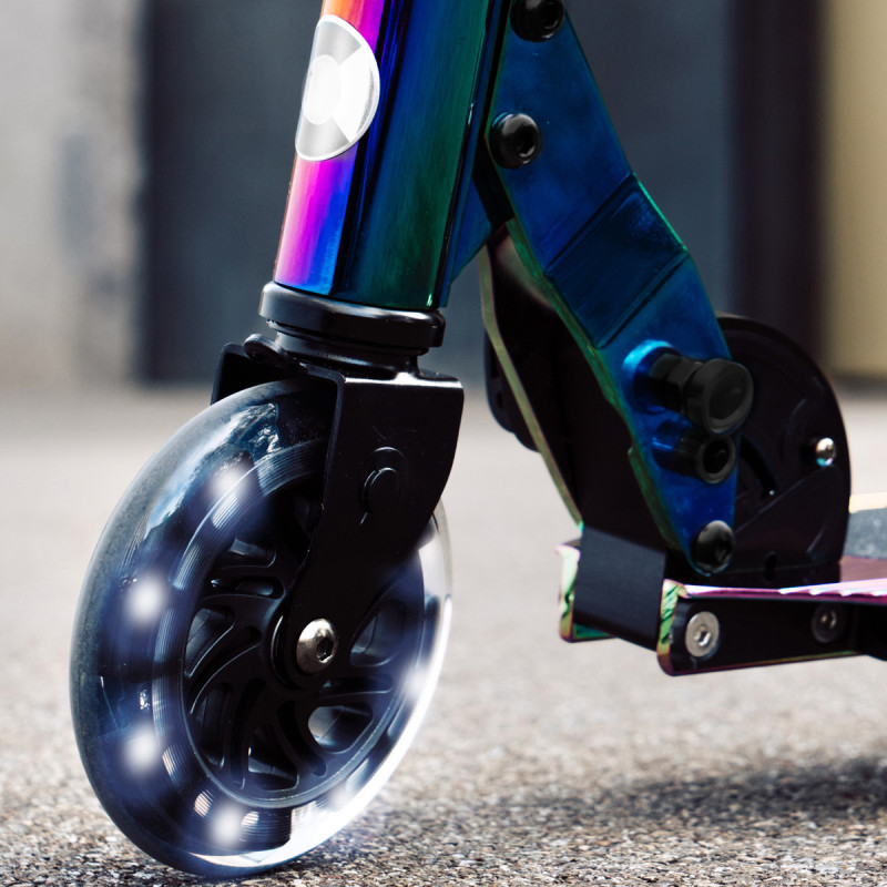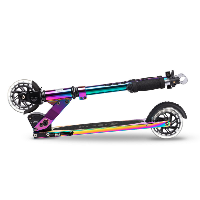 Самокат MICRO серії 'Sprite LED' - НЕОХРОМ - досконалий і міцний двоколісний самокат. Він оснащений світловими колесами і складною рамою.