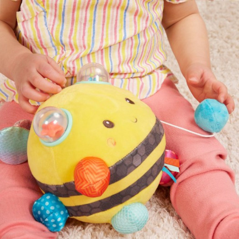 Відкрийте для малюка веселу бджілку - додайте джмеле-веселощів! Вона м’яка на дотик, з різними приємними на дотик текстурами, бджоло-красивими візерунками та різноманітними звуками! Малята можуть розвивати свої слухові, тактильні та зорові навички, знайомлячись з безліччю цікавих функцій бджілки. Ця м’яка іграшка створена спеціально для крихітних ручок, завдяки привабливому кулясто-опуклому дизайну дитині буде цікаво досліджувати її, зручно хапати та гратися!