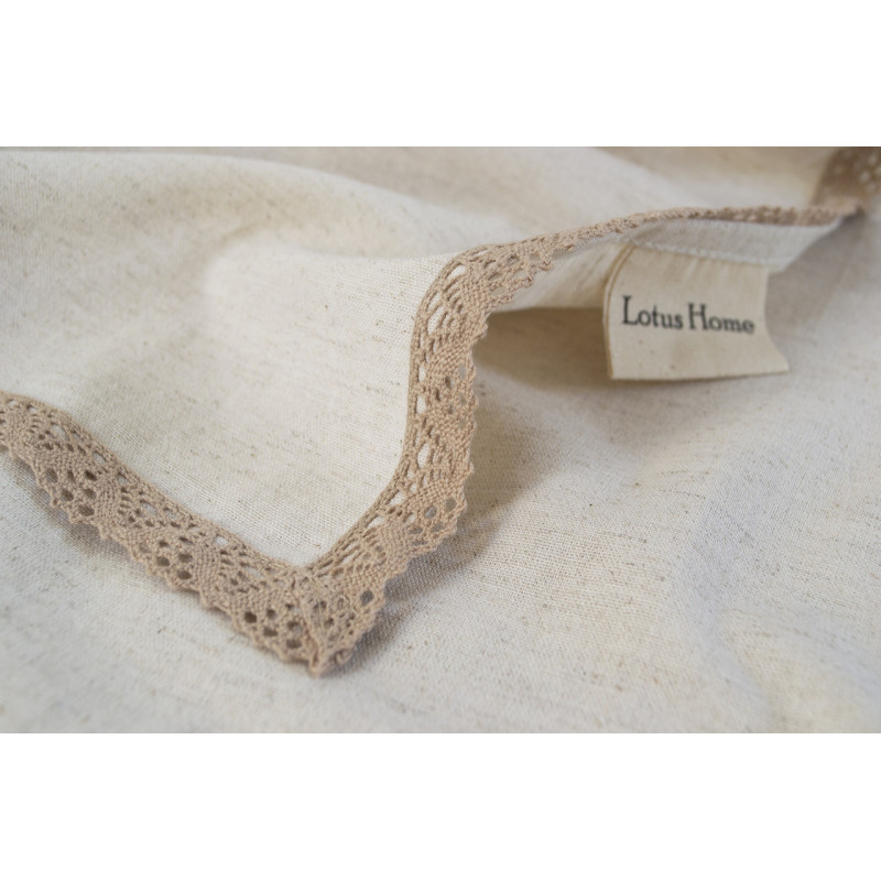 Скатертина Bondy від бренда Lotus Home виготовлена з поєднання натурального льону та бавовни, що робить її одночасно практичною й естетично привабливою. Льон забезпечує щільність, характерну фактуру та стійкість до зношування, а бавовна надає виробу додаткову м'якість під час дотику. Така композиція матеріалів гарантує не тільки вишуканий зовнішній вигляд, але й зручність у щоденній експлуатації — скатертина легко переться, швидко сохне та довго зберігає первісну форму.