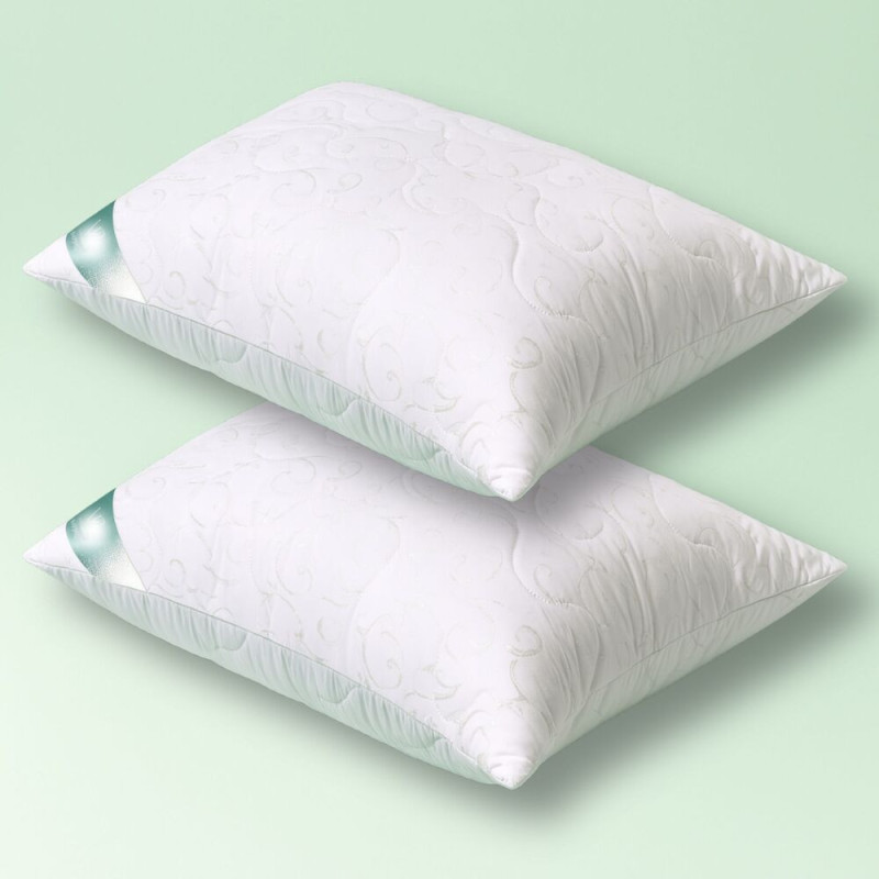 Наповнювач у подушках це тонке поліефірне мікроволокно, яке проходить рясну обробку силіконом. Його також називають штучний пух. Це тонке волокно, воно антиалергенне, воно забезпечує виключну м’якість, аналогічну до натурального пуху. Подушка підходить людям, схильним до алергії та людям з чутливою шкірою. Мікроволокно ефективно відводить надлишок тепла від тіла, що робить вироби комфортними у спекотні дні. Чохол подушок з набору СОФТ має стьобаний дизайн.