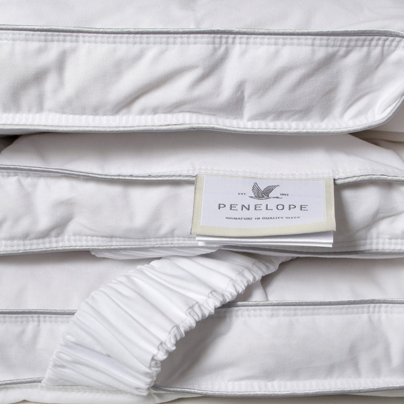 Чохли в лінії пухових виробів Penelope виконані з натуральної пухотримаючої бавовни, щільна структура якої є бар'єром для пухових ворсинок і пилу. Про те, що перина не викликає алергію і безпечна для здоров'я свідчить маркування NOMITE - цей знак якості підтверджує гіпоалергенні та антикліщові властивості, що відповідає Європейському стандарту EN 13186. Важлива особливість виробів Penenlope, що для їх виготовлення використовуються тільки якісні і перевірені матеріали: натуральна пухотримаюча бавовна, пух і перо Сlass 1, які пройшли необхідну обробку і контроль на відповідність нормам ЄС
