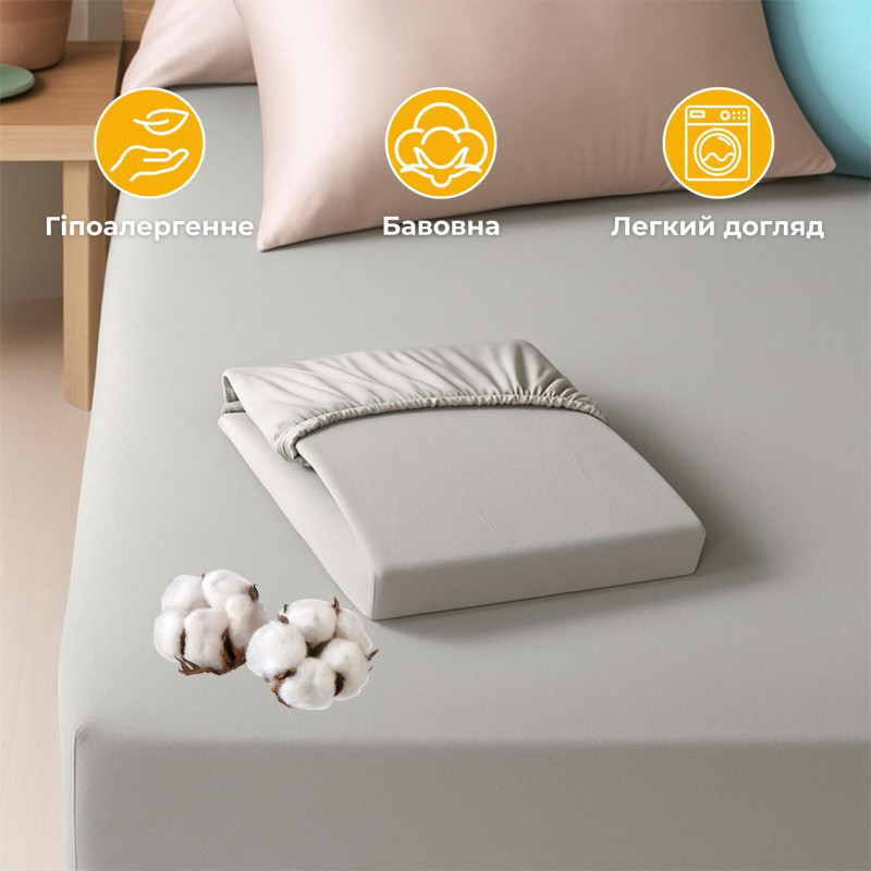 На відміну від класичної бязі або ранфорсу, трикотаж тягнеться та ідеально облягає матрац — без складок і без натяжіння. Не втрачає форму навіть після тривалого використання — еластан забезпечує еластичність і повернення до початкової форми. За відчуттями — набагато м'якше, без шурхотливої структури, властивої тканинам типу бязь.