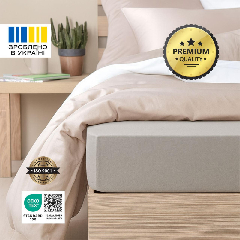 Простирадло трикотажне еластичне на гумці IDEIA - 80/90х200х35 см бавовна Сірий/бежевий