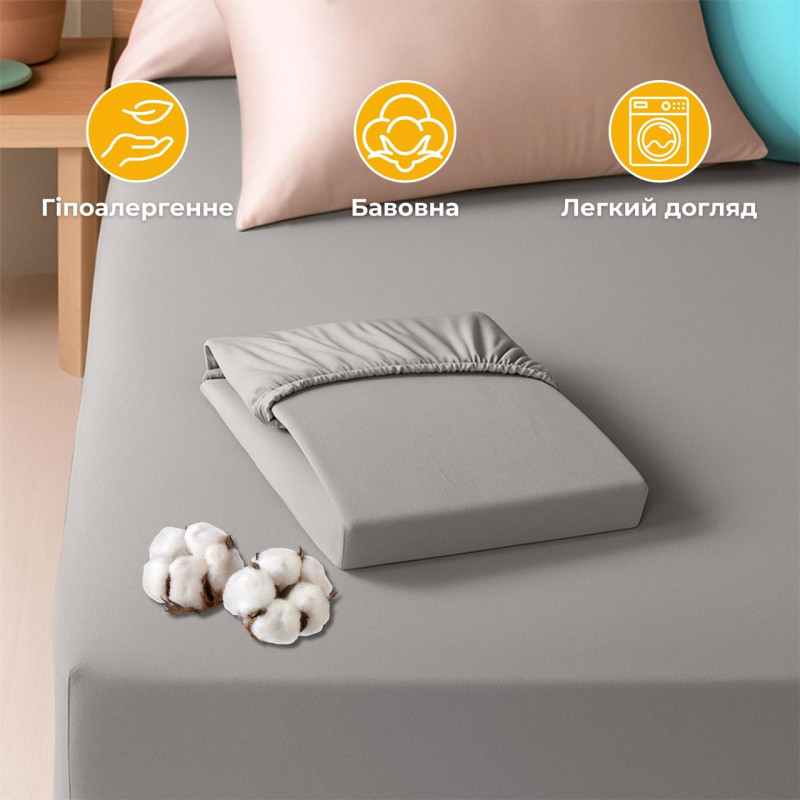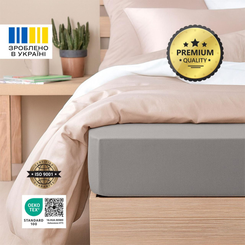 Простирадло трикотажне еластичне на резинці IDEIA - 140/160х200х35 см бавовна Сірий