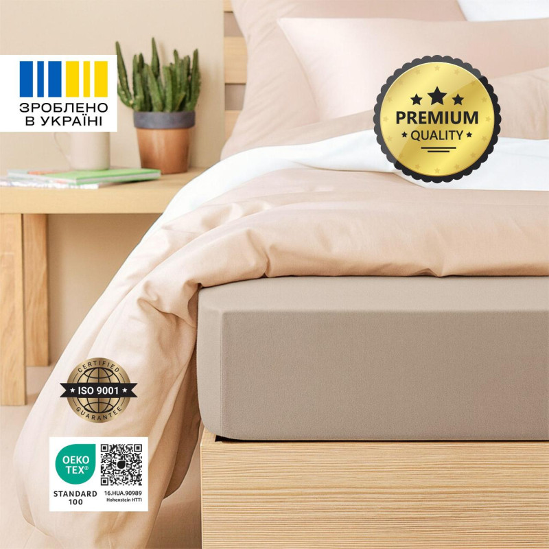 Простирадло трикотажне еластичне на резинці IDEIA - 180/200х200х35 см бавовна Бежевий