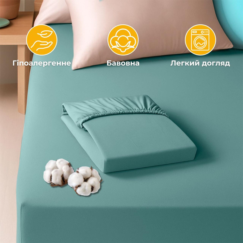 Простирадло трикотажне еластичне на резинці IDEIA - 80/90х200х35 см бавовна М'ята
