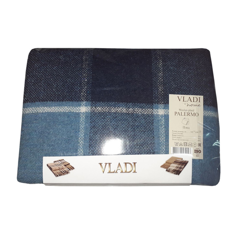 Плед вовняний Vladi - Палермо No7 Sofa біло-сіро-блакитний-т.синій 140*200 полуторний оптом