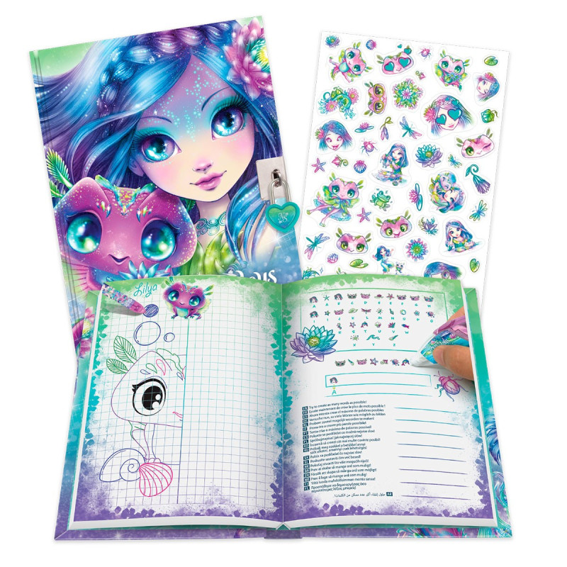 Великий набір зі щоденником для секретів NEBULOUS STARS - МРІЇ НЕНУФІЇ — це чудовий спосіб провести час з користю! У щоденник із замочком і ключем ви можете записати свої найпотаємніші секрети, а також виконати цікаві творчі завдання. Завдяки великому асортименту канцелярського приладдя процес заповнення щоденника буде неймовірною насолодою. Пориньте у зіркову творчість космічного світу Nebulous Stars разом із Ненуфією та її чарівною улюбленицею Лілією!