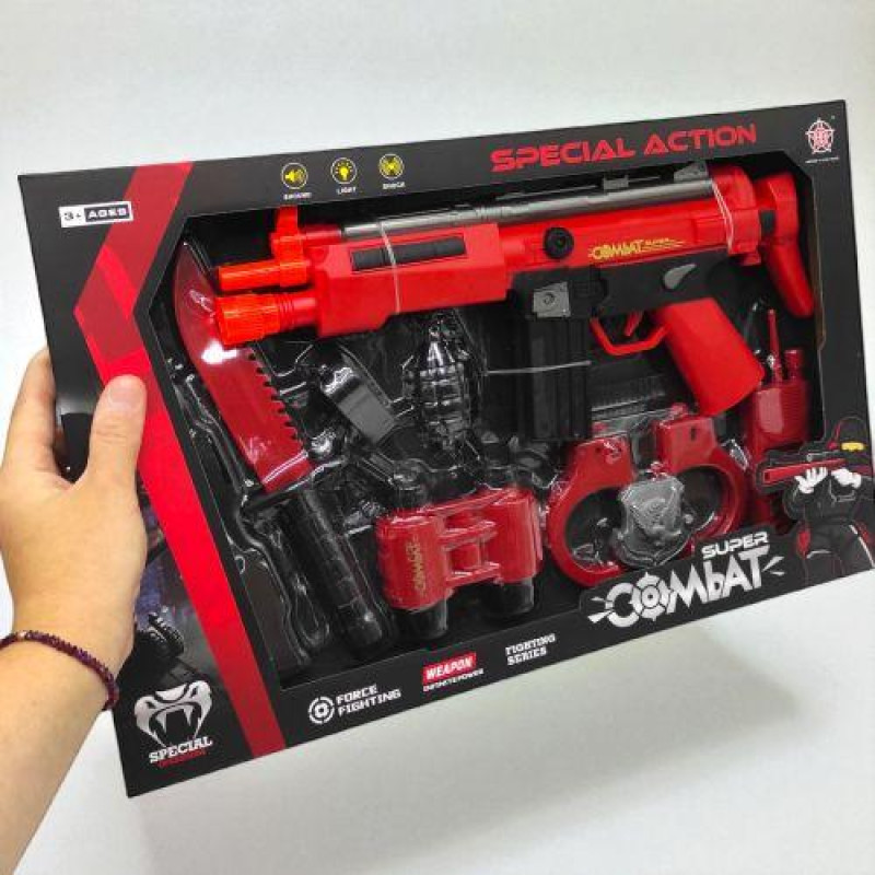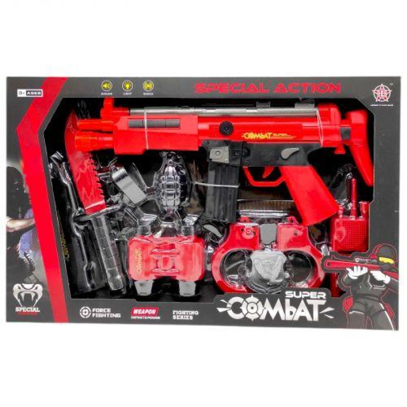 Комплектація: Автомат (зі звуковими ефектами і вібрацією), ніж, наручники, бінокль, гранада, радіо, свисток