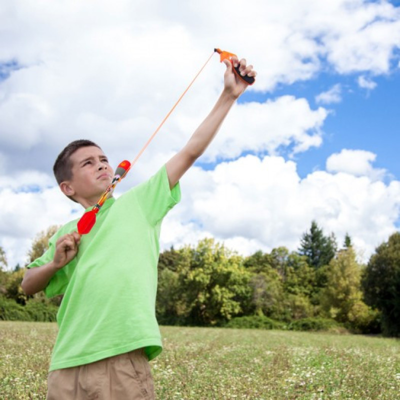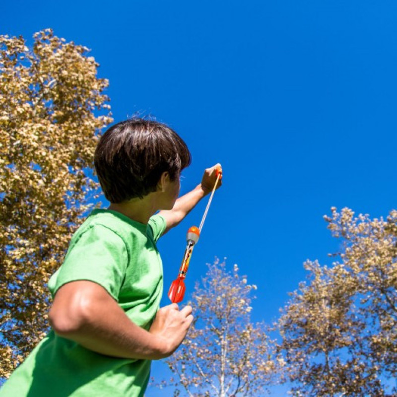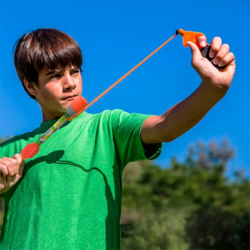 - В комплекті спеціально розроблений запускач. Просто зачепіть ракету, відтягніть назад та відпускайте! Все дуже легко!